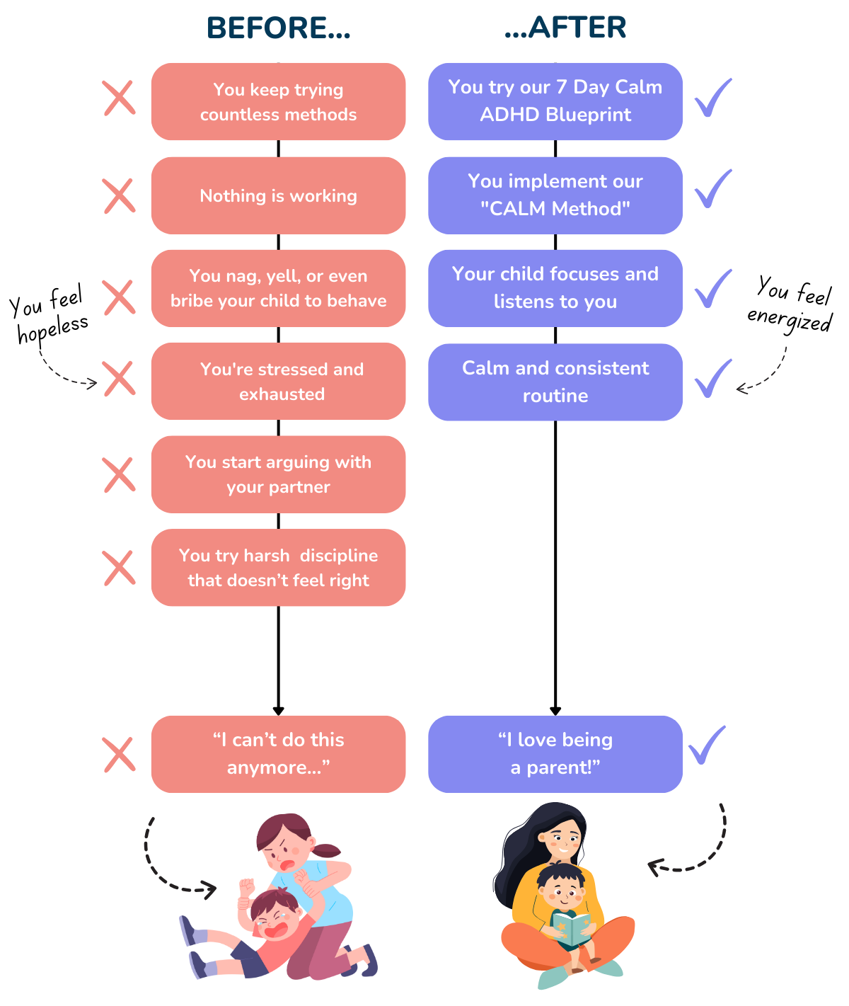 You'll have more energy for yourself and your relationships. ADHD parenting stress won't dominate your life anymore.